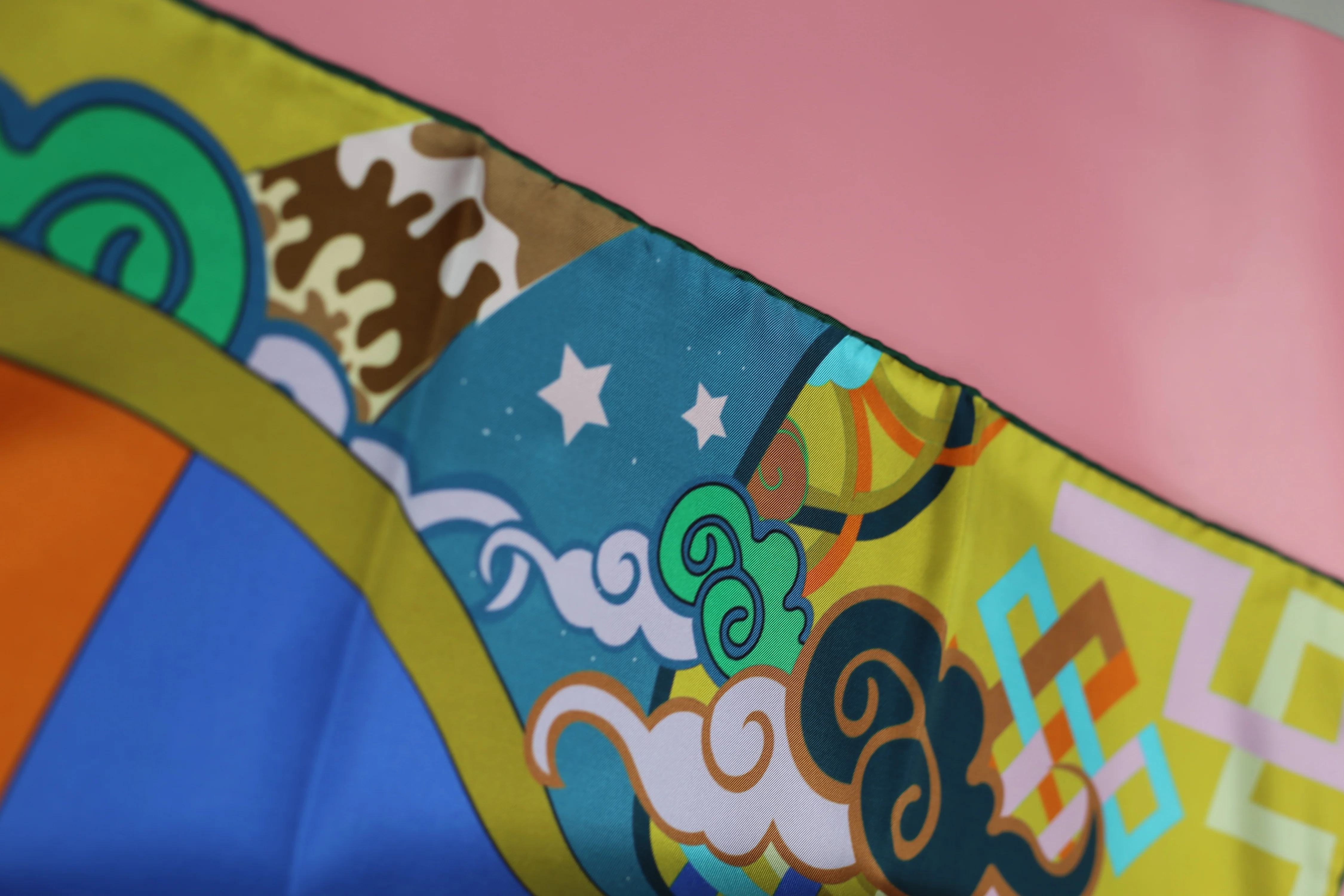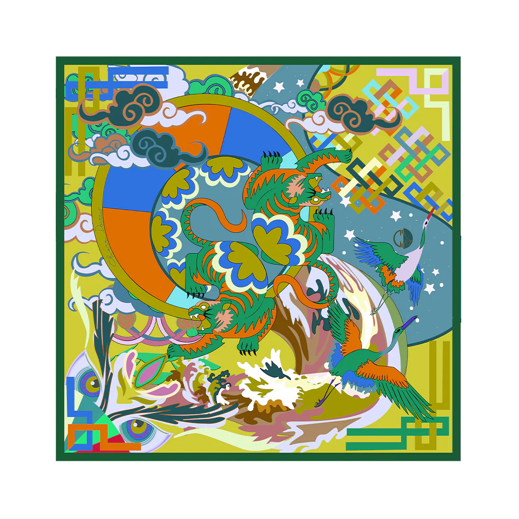 Wild is a foulard crafted by Chiara Daverio in Milan, Lombardy. This colorful foulard is made of 100% silk and features an abstract design with geometric lines in the corners. Get creative and wear Wild around your neck, in your hair, or even on your favorite accessories.