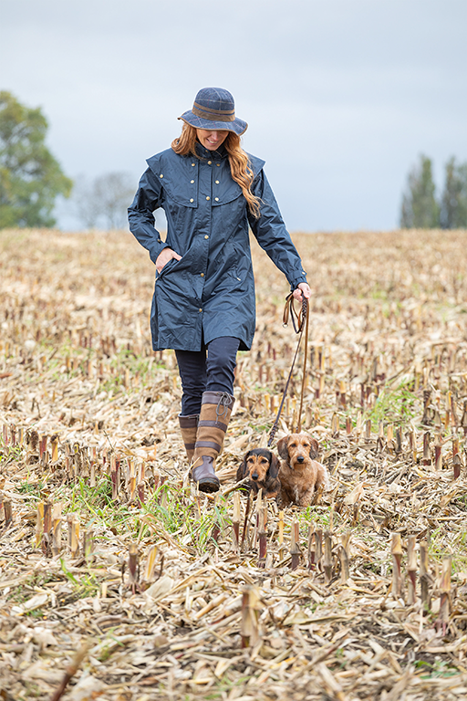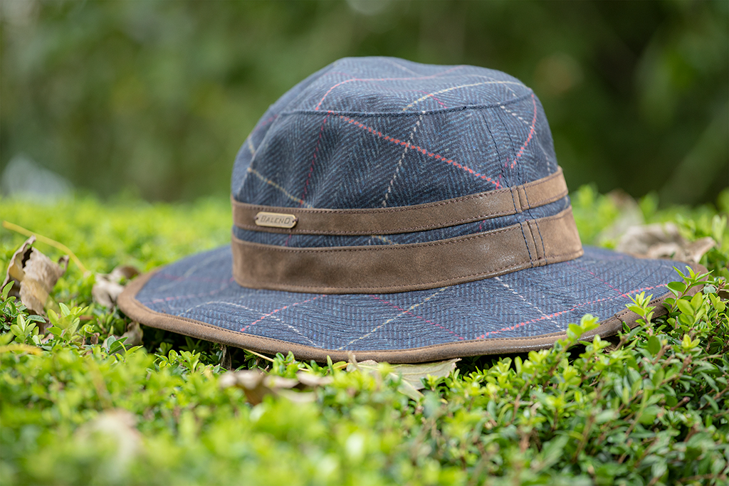 This hat matches our printed tweed collection. The soft and crushable waterproof fabric will make this hat showerproof and easy to carry along.