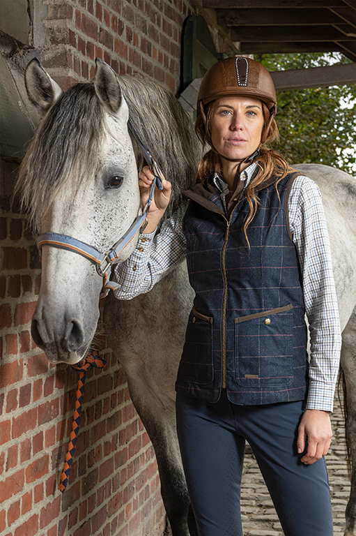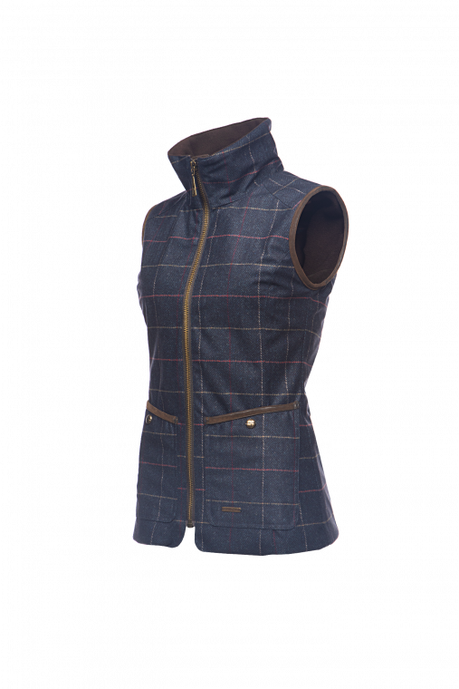 This traditional styled piece was given a technical twist and with a dash of creativity it became a waistcoat that can be worn just anywhere. Our version of the lady country waistcoat is lined with dark brown fleece for extra warmth and comfort. It has a high snug collar and comes with 2 front pockets.
