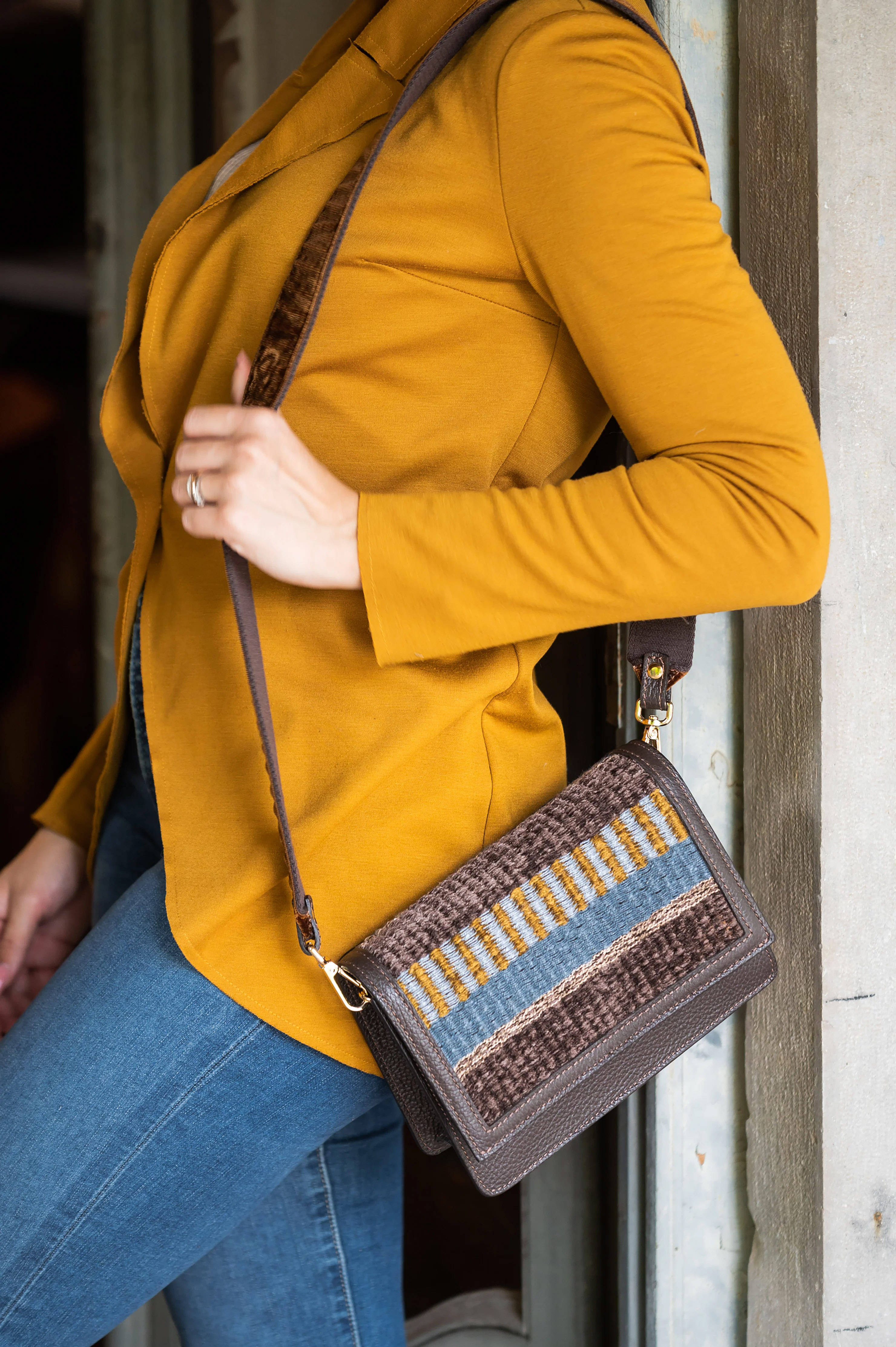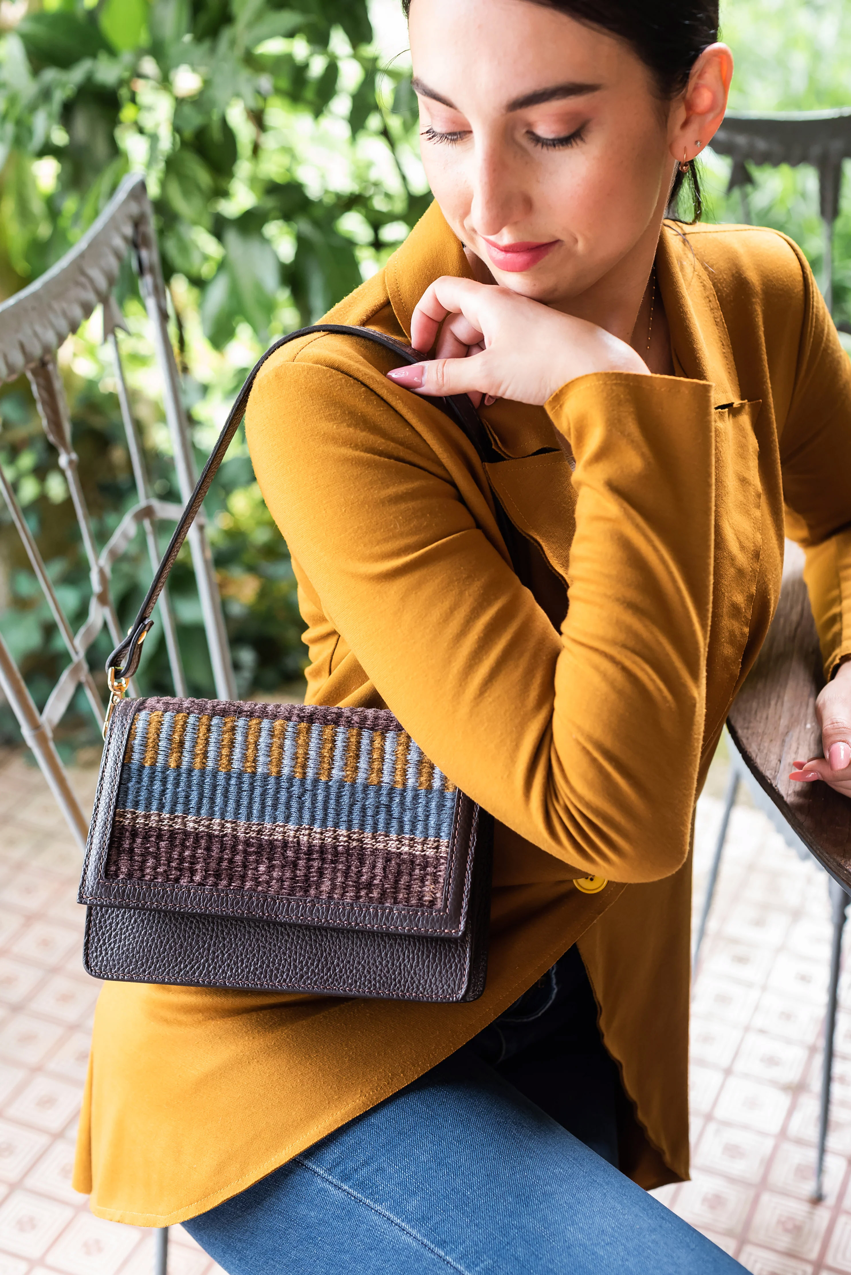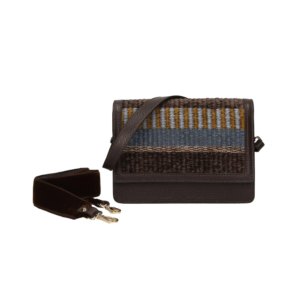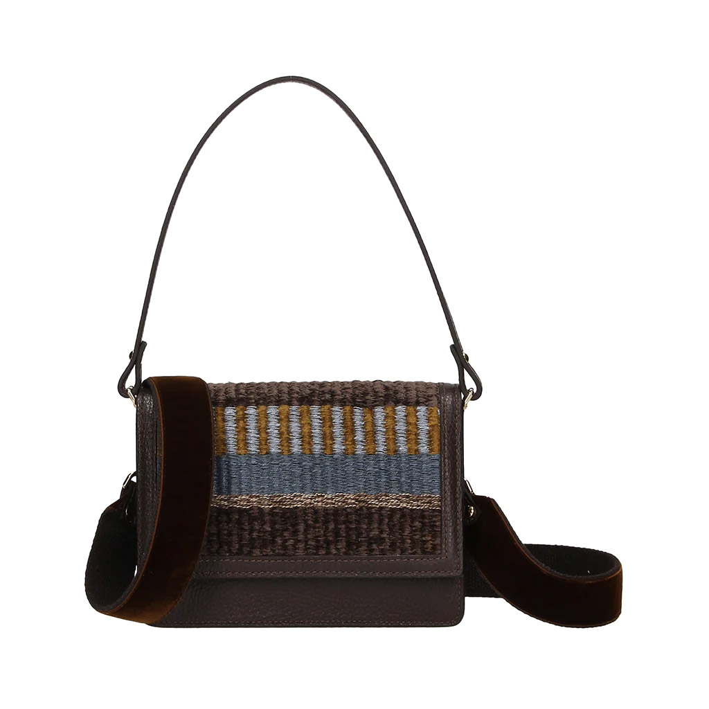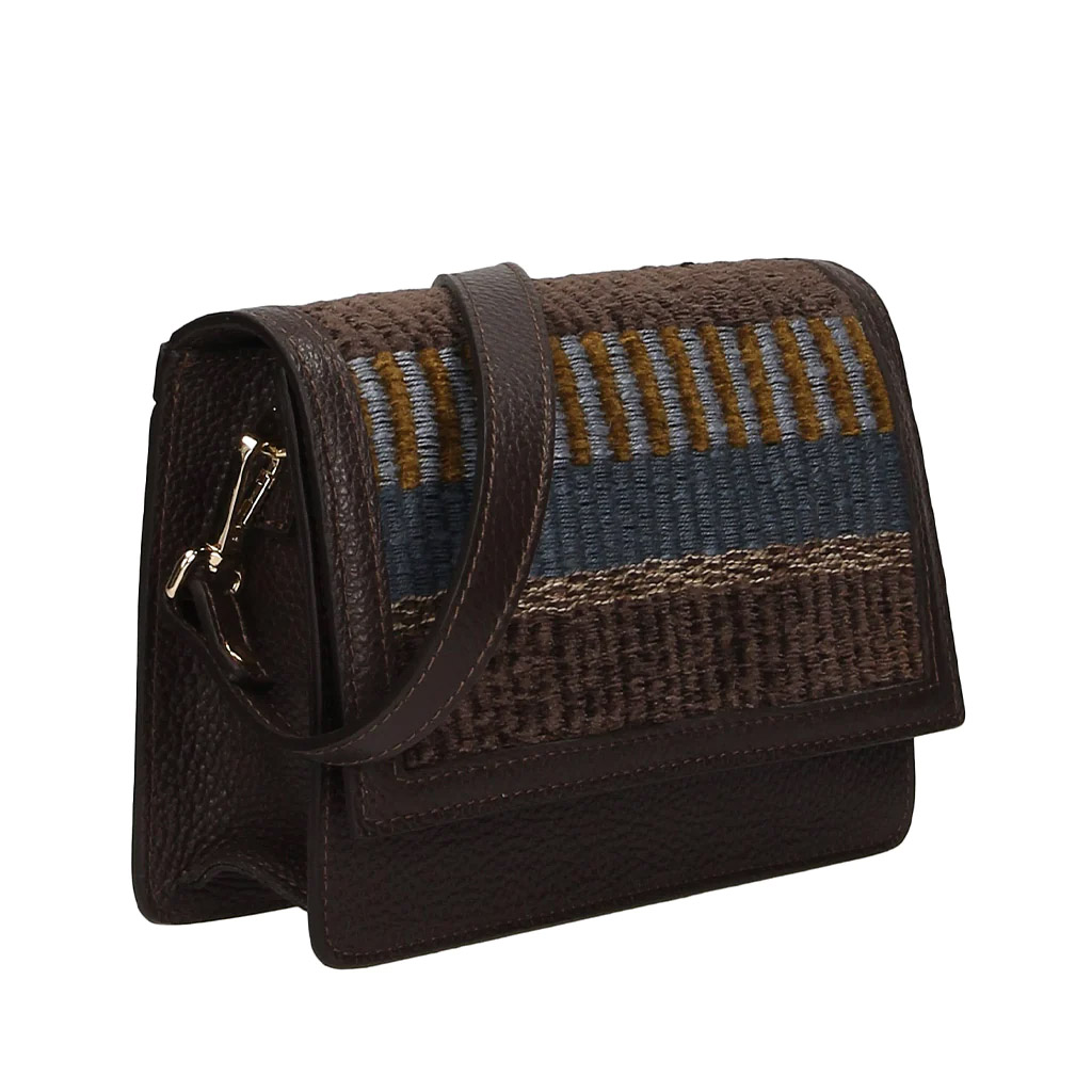 Frida B is a shoulder bag composed of dollar print calfskin and chenille jacquard made by Bonfanti.