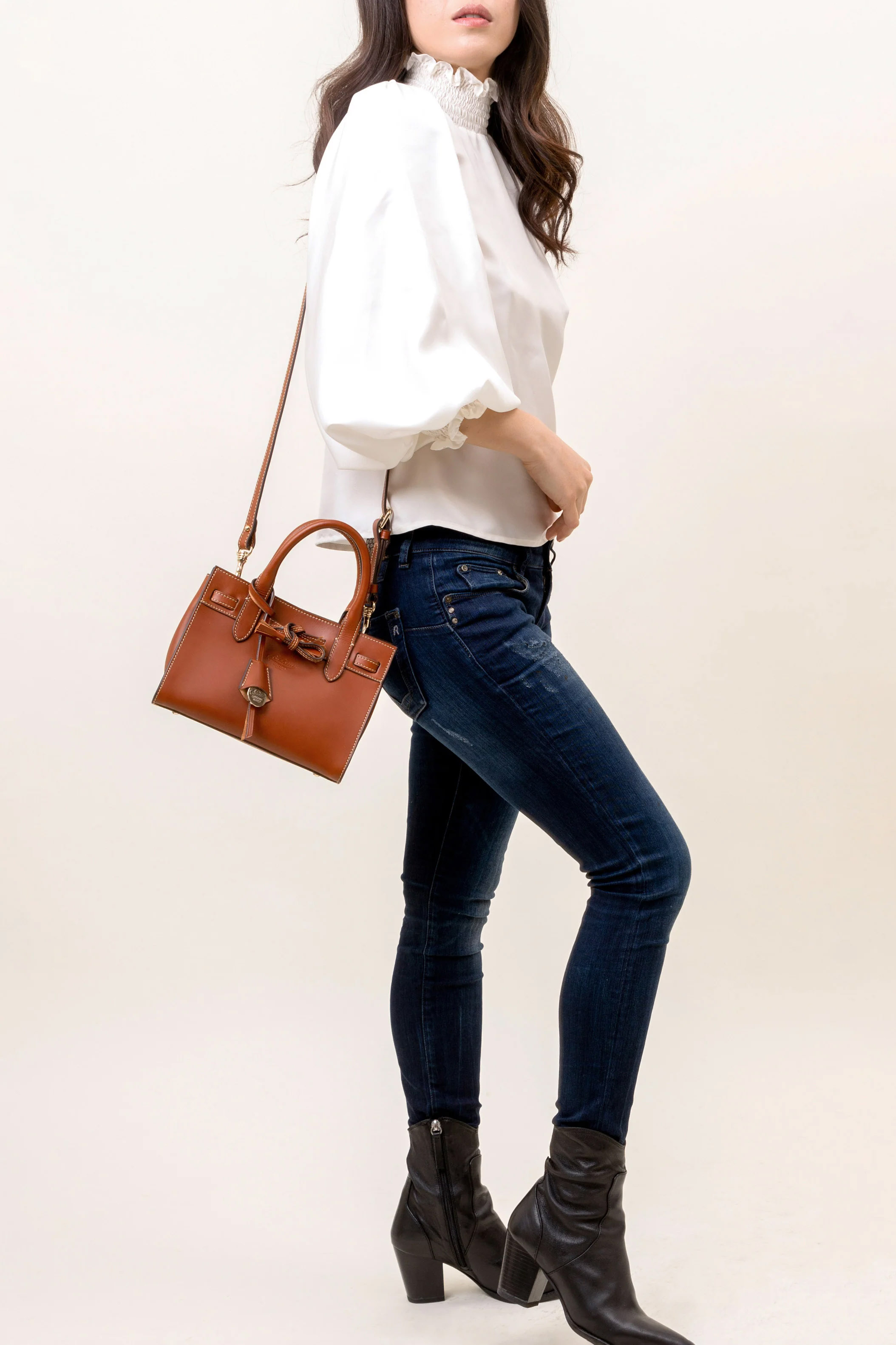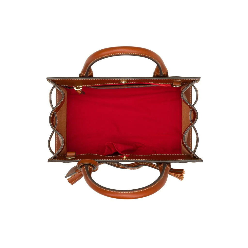 Nora is a top handle bag made by the master leather artisans of Boldrini Selleria near Pistoia, Tuscany. This vegetable-tanned Vachetta leather bag is entirely handcrafted by Tuscan artisans. Compact yet super chic, Nora includes an adjustable strap for a seamless transition to a casual crossbody.